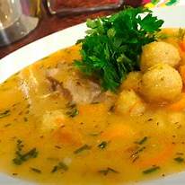 - 옥수수 가루와 치즈로 만든 경단을 닭고기 수프에 넣은 전통 보양식입니다.